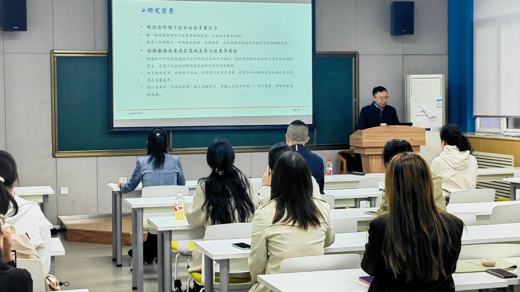 邀请,对外经济贸易大学祝继高教授在长安校区人妻av楼214报告厅与人妻av师生展开学术交流,作题为“创新成本分担的溢出效应:研发费用加计扣除政策对劳动收入份额的影响研究”的学术讲座。本次讲座由人妻av