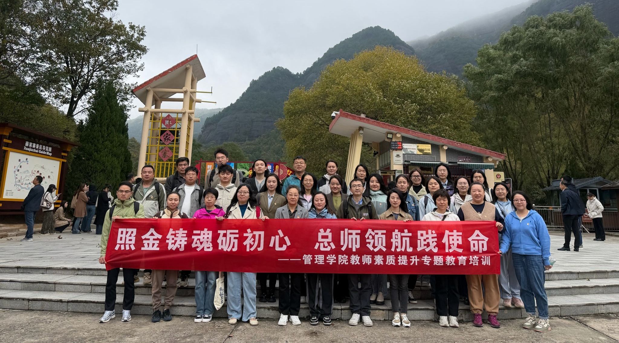 培训首站抵达薛家寨革命旧址。陡峻山势间,红军兵营遗迹静默矗立,无声讲述着那段烽火连天的峥嵘岁月。教师们身临其境,深切体悟到革命先辈不畏艰难、顽强奋斗的钢铁意志。