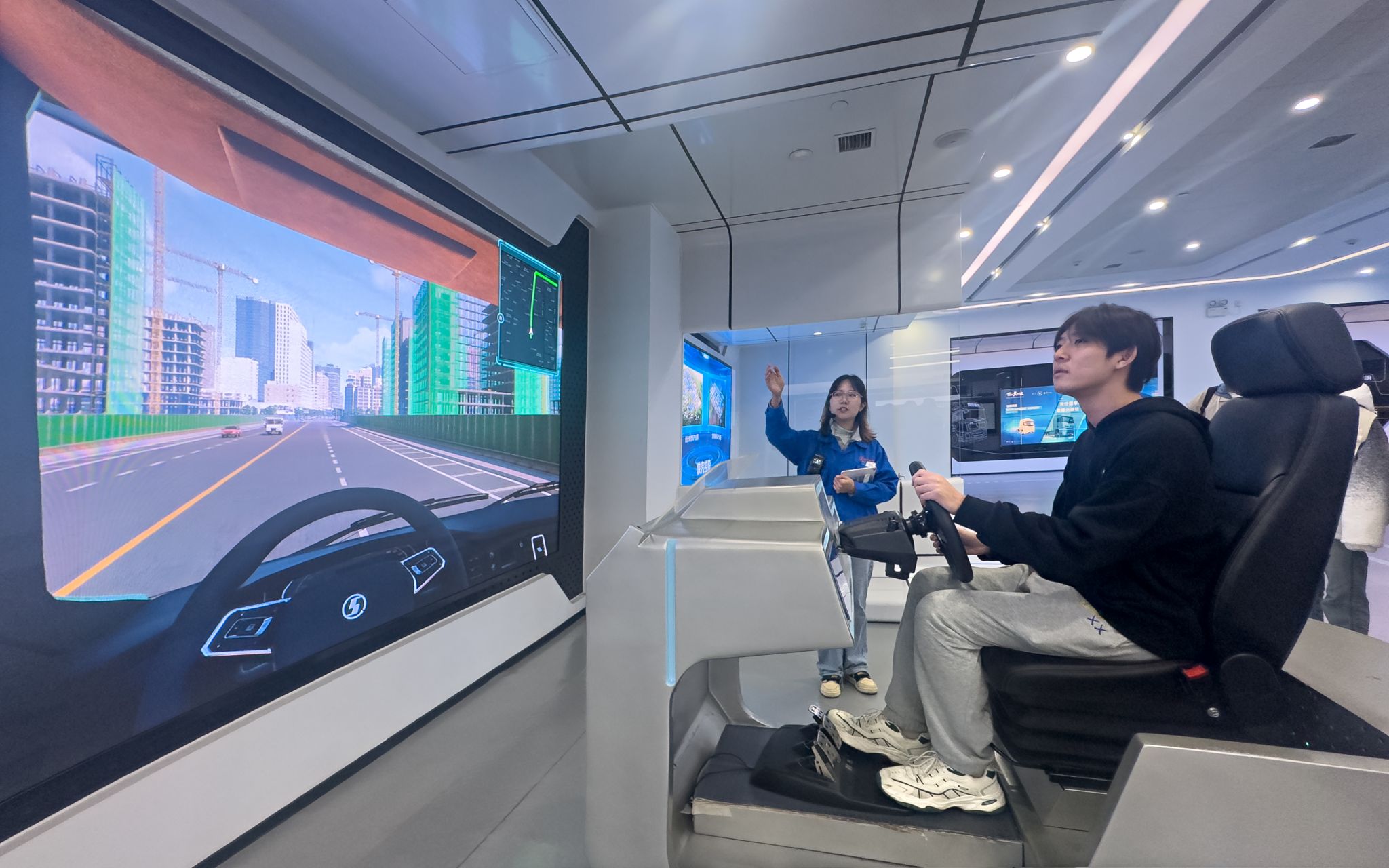 总装车间参观结束后,师生一行来到天行健车联网体验中心,观看了天行健车联网系统如何利用毫秒级数据采集与AI分析构建车辆“数字孪生”模型,覆盖工况监测、驾驶行为识别、油耗优化及故障预测等功能,直观呈现了车联网对智能交通的支撑作用。此次沉浸式体验,让学生们对智能制造和智慧交通有了更为立体的认知,感受到中国在全球汽车产业中不断攀升的科技实力与创新能力。
