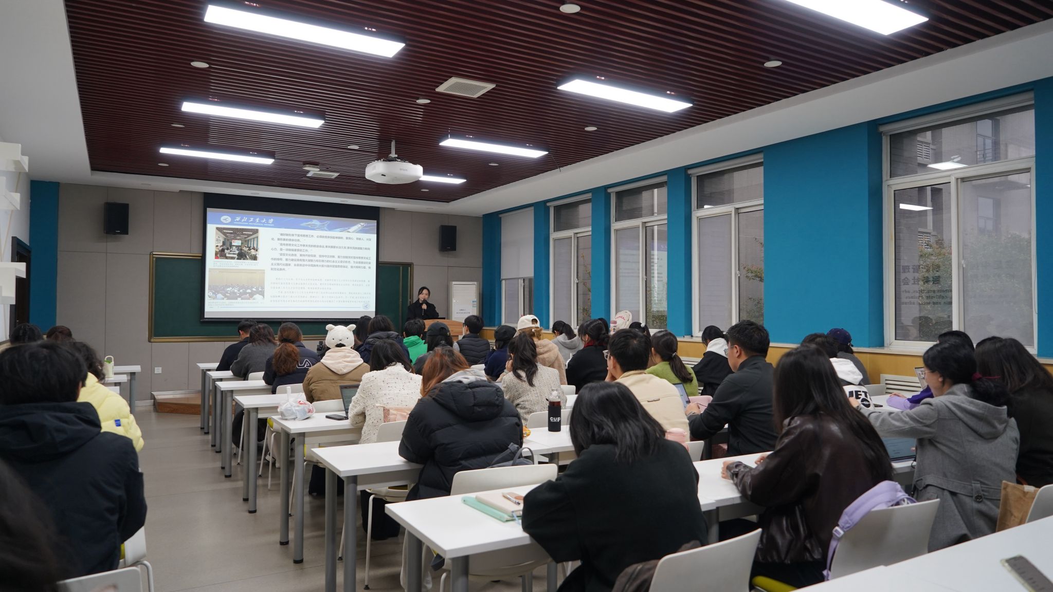 付怡结合学校近年来新媒体建设成果与实际工作案例,从新闻的要素与写作原则、不同体裁新闻写作技巧、手机摄影技巧与注意事项等三个方面展开系统讲解,内容兼具理论指导性与实践操作性。针对新媒体时代的新闻传播的特点,她还分享了标题创作的“八大技巧”、手机拍摄与后期处理等内容,为同学们提供了一系列实用技巧。