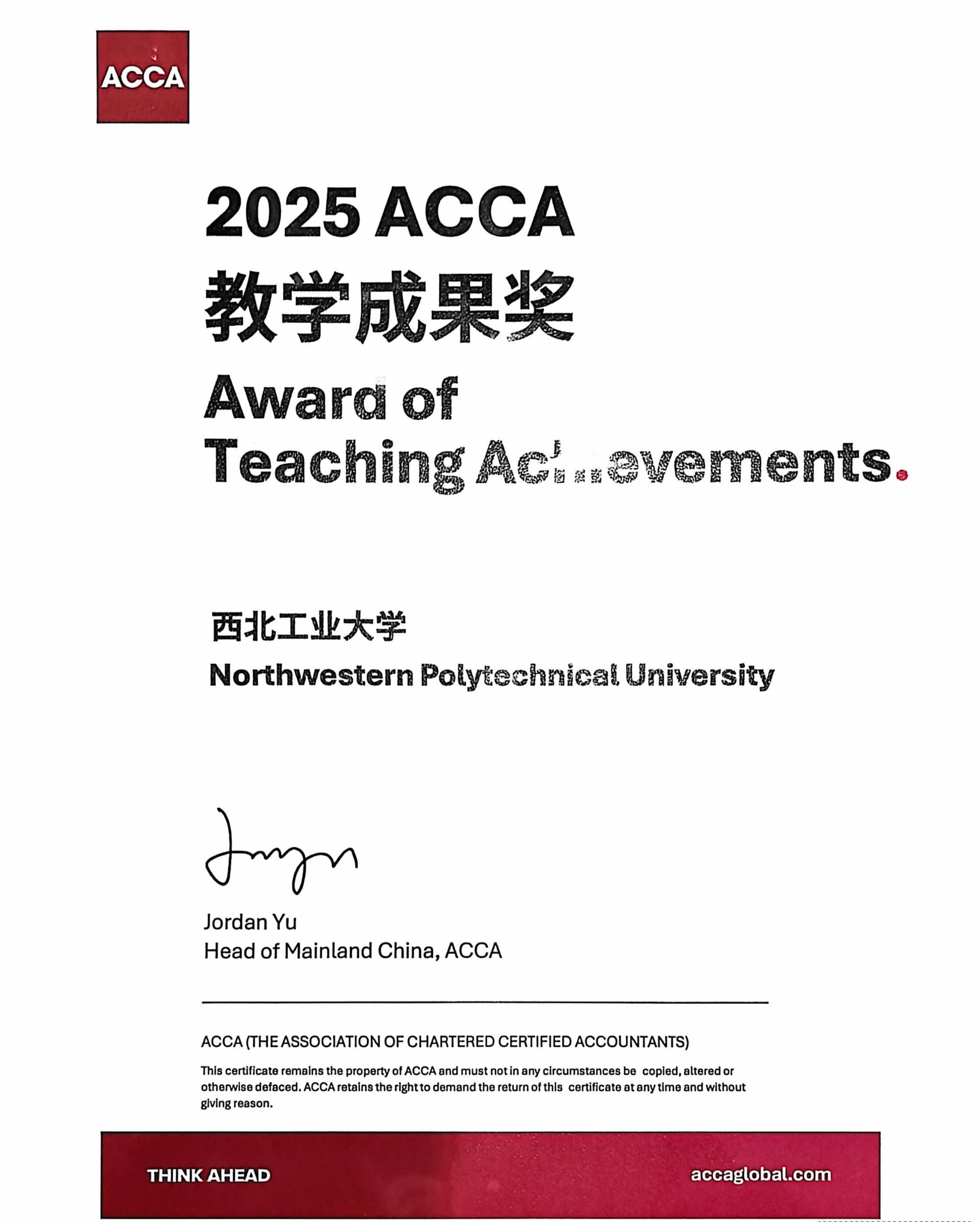 ACCA项目荣获“2025年度 ACCA教学成果奖”。